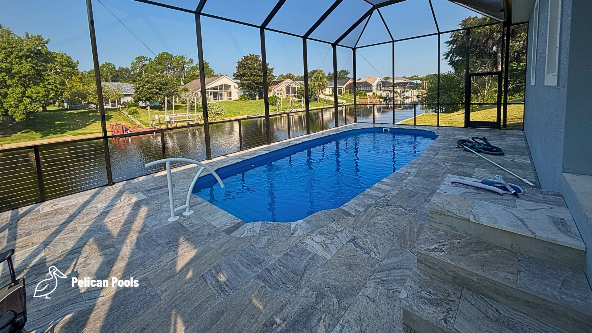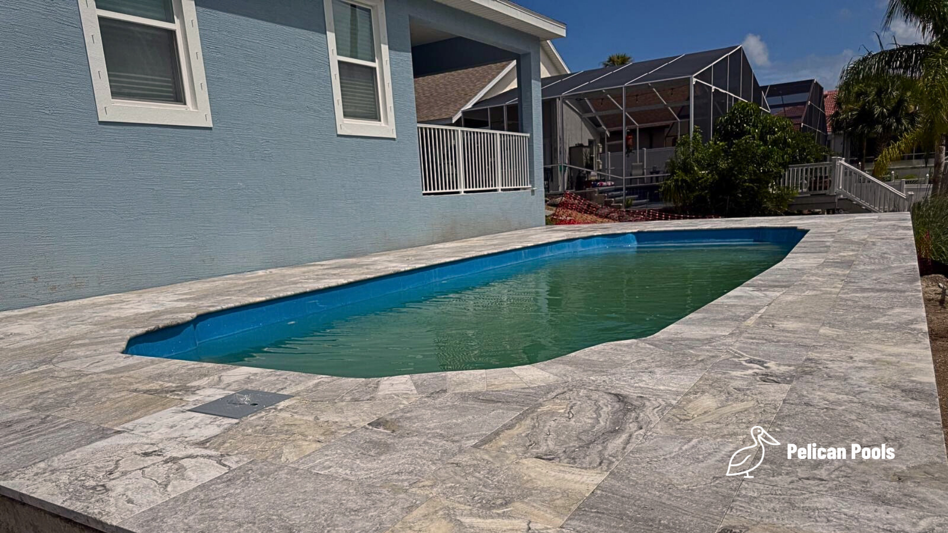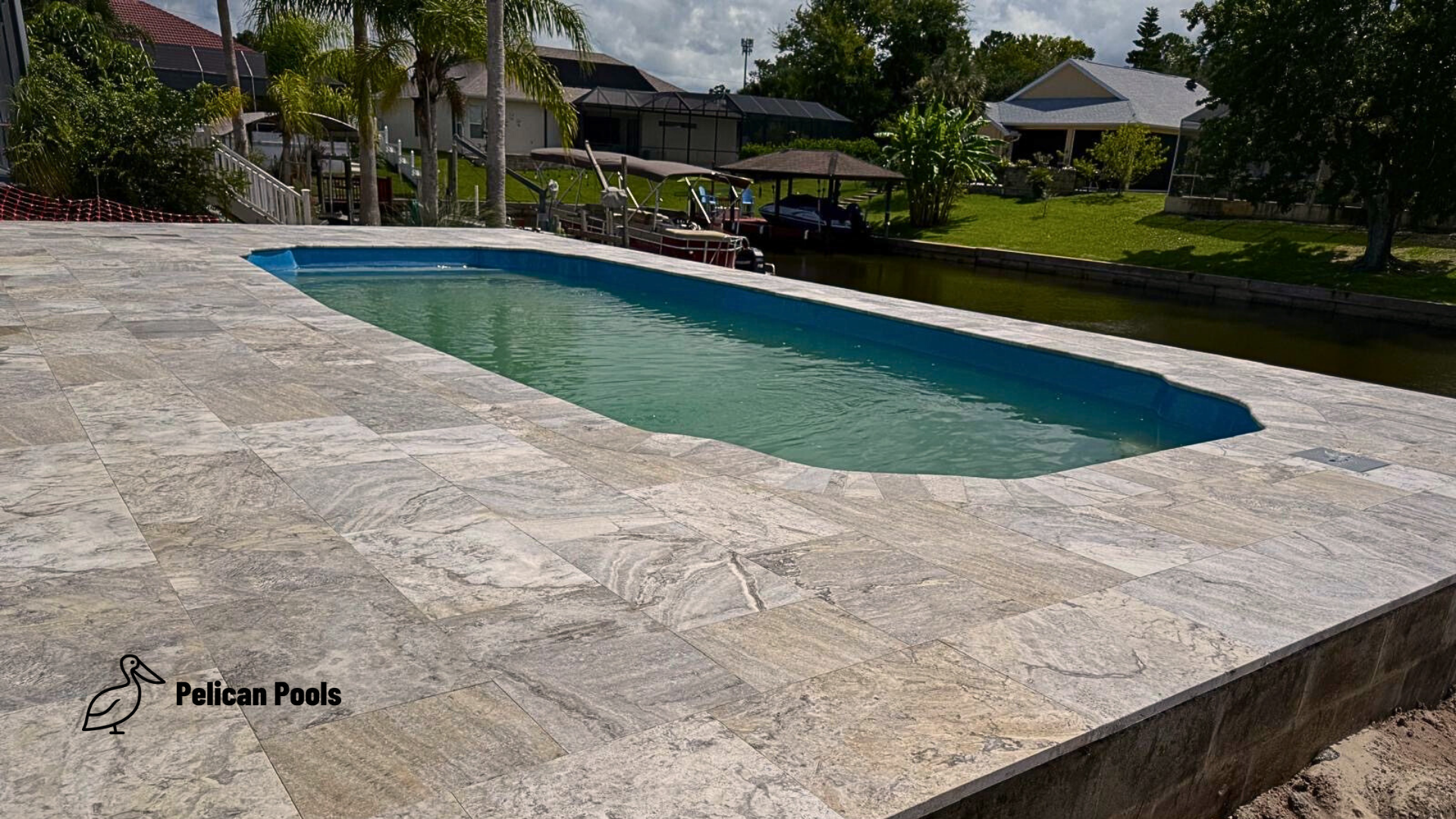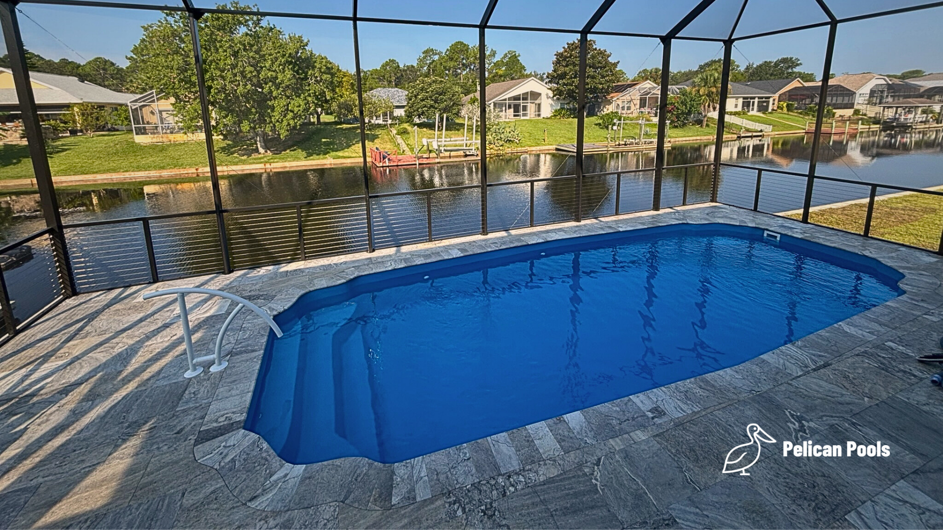 The folks at Pelican Pools are simply amazing. We decided we might actually not miss the pitting, staining and water balancing issues associated with a marcite pool and went with fiberglass this time. We have a small lot on the Palm Coast canals. Dillion helped us identify the best pool we could shoehorn into our lot. Their supplier, San Juan Pools, has a huge selection to choose from.