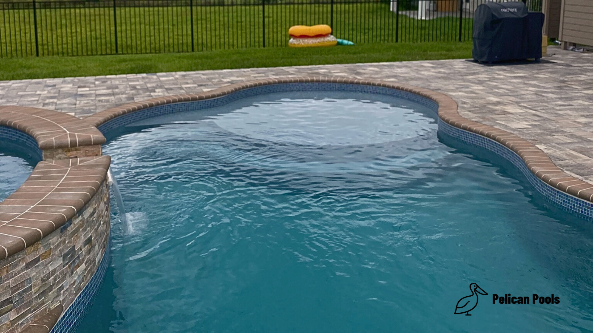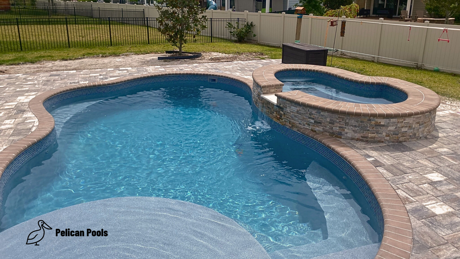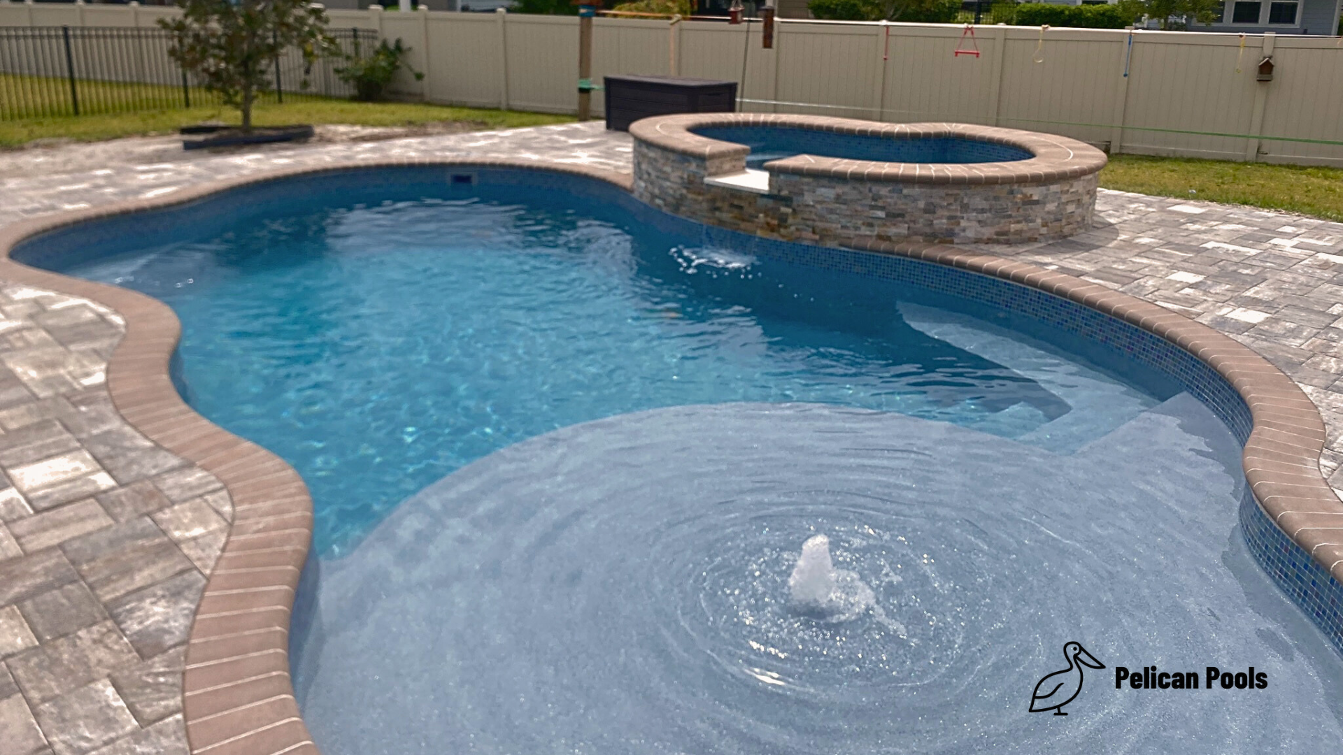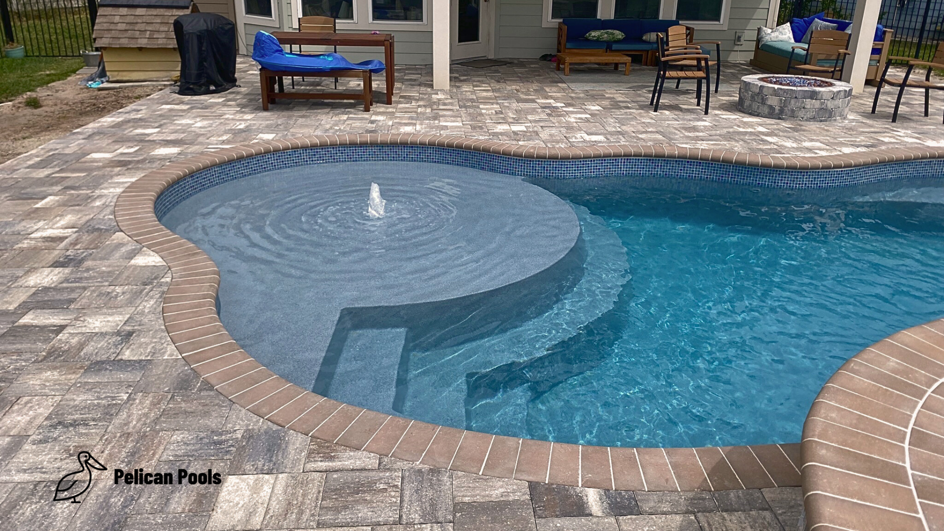 This pool is more than just beautiful—it’s designed with functionality in mind. It includes a modest deep end of 5′ 7″, perfect for swimming and light diving. For those who prefer a more relaxed approach to pool time, the deep end features a convenient swim-out bench, offering a cozy spot to sit and enjoy the water.